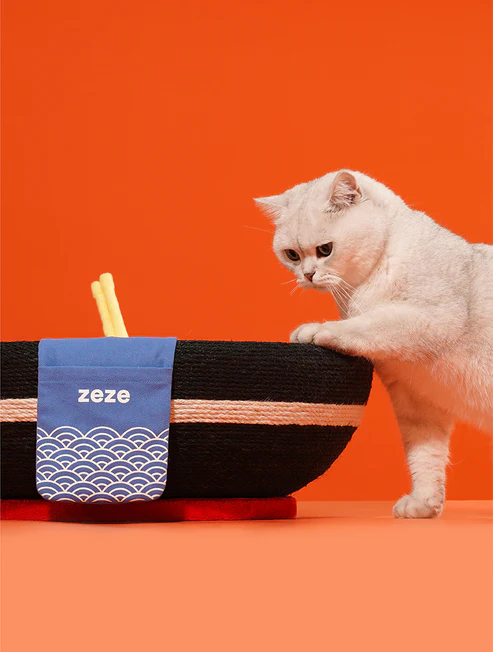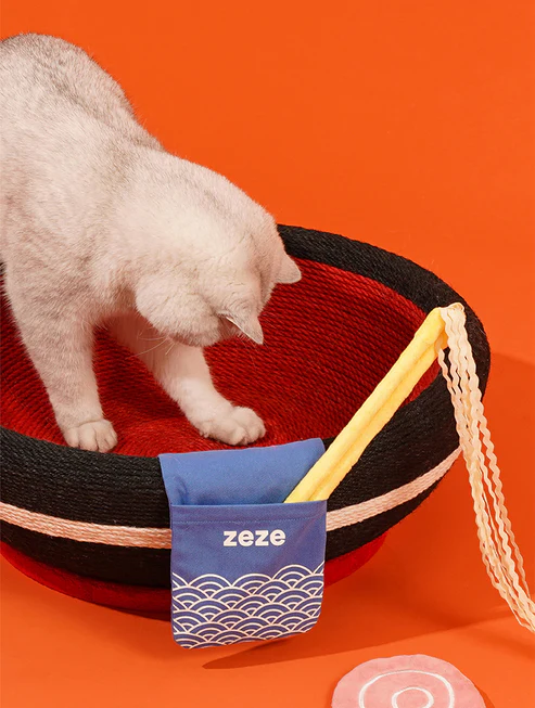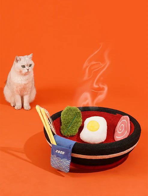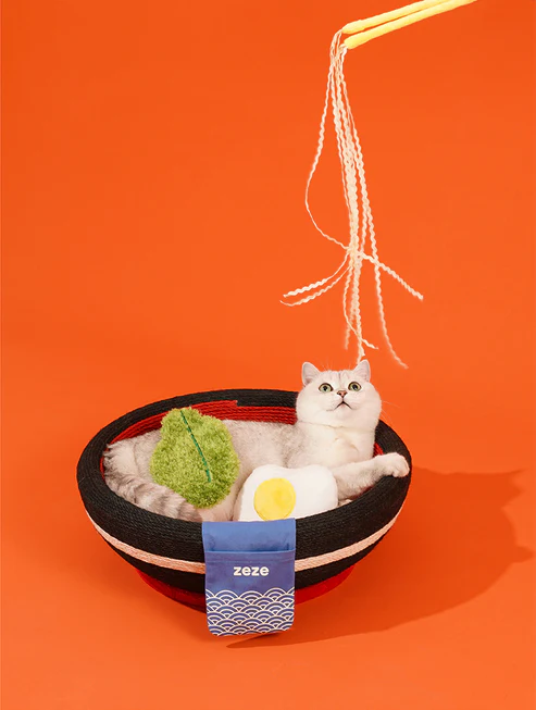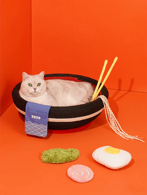 Chegou o Ramen Bowl Scratch Bed – um arranhador em formato de tigela de lámen gigante, feito para transformar a rotina do seu gatinho em pura diversão!