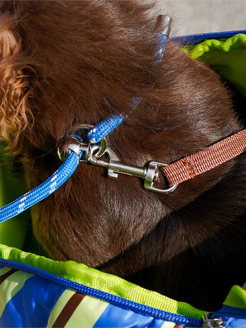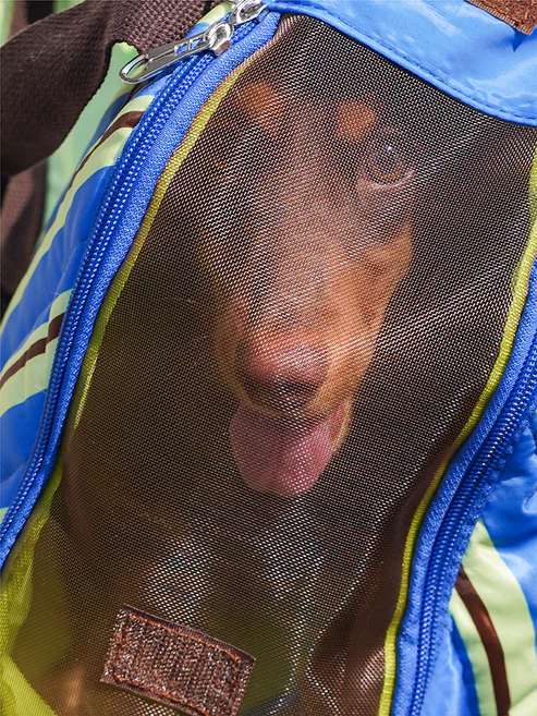 Abertura frontal com elástico, perfeita para que seu pet coloque a cabecinha para receber um petisco ou aproveitar um ar fresco.