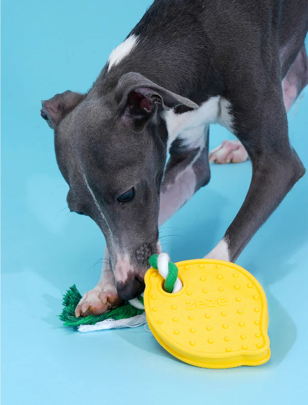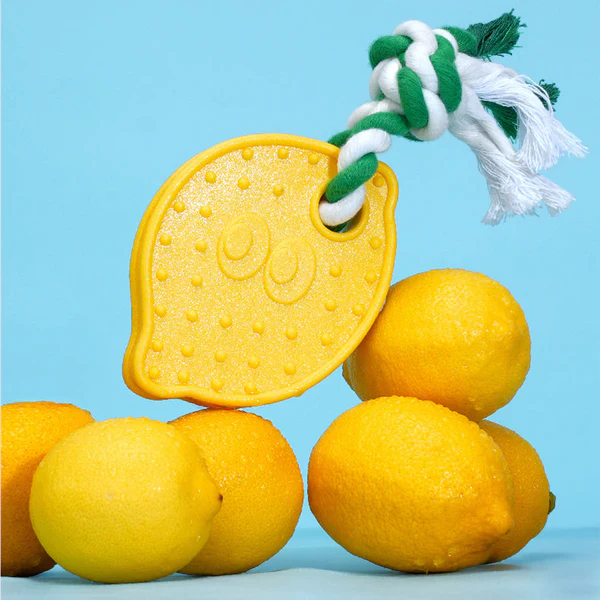 O limão exibe os adoráveis olhinhos signature que são a marca registrada da nossa linha, trazendo personalidade e charme ao brinquedo. Fabricado em TPR (borracha termoplástica), uma mistura inteligente de borracha e plástico, oferece resistência excepcional para até os mastigadores mais entusiasmados.