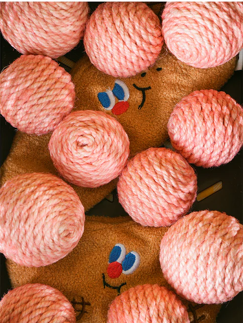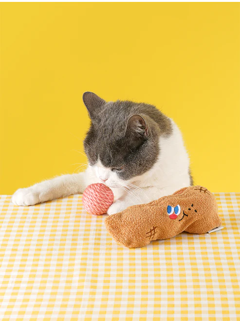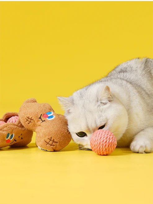 Design com saquinho de pelúcia para guardar as bolinhas quando o gato não estiver brincando, ajudando a manter a casa organizada.