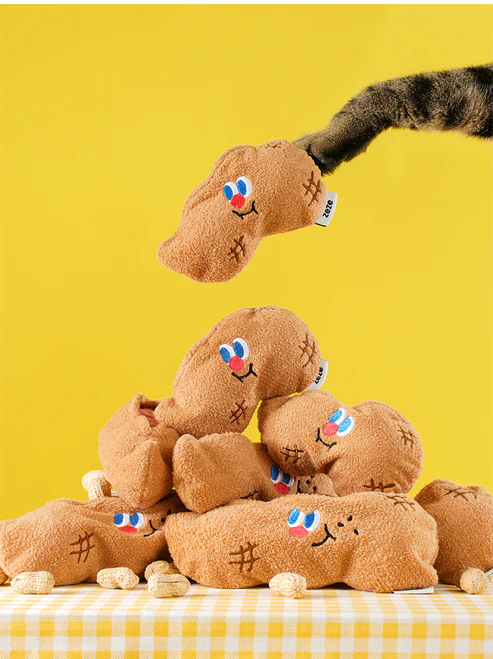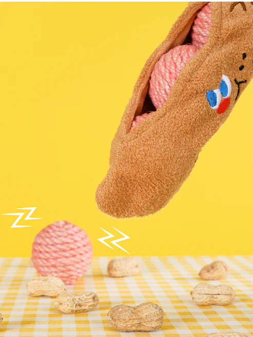As bolinhas podem ser retiradas do saquinho, como se o gatinho estivesse abrindo um amendoim ou uma vagem de feijão.