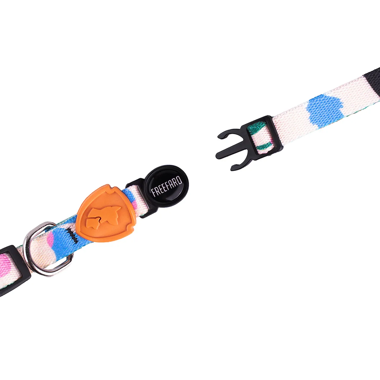 - Fecho de pressão que abre sozinho caso o gato fique preso;