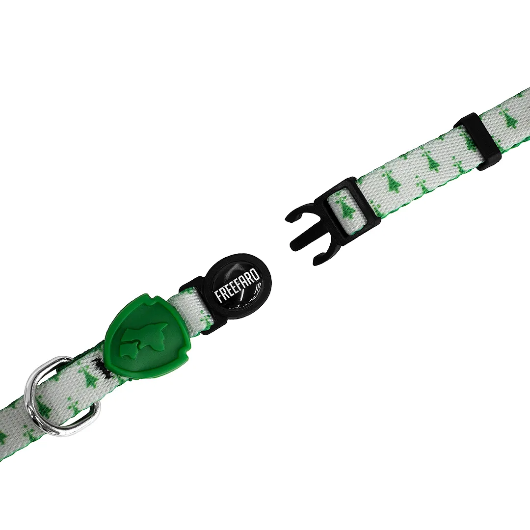 - Fecho de pressão que abre sozinho caso o gato fique preso;