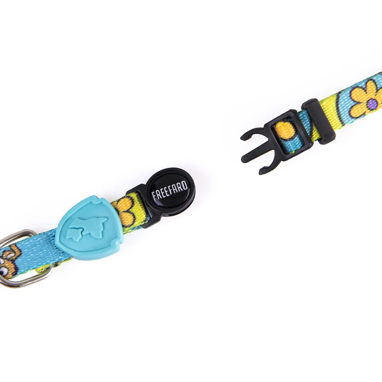 - Fecho de pressão que abre sozinho caso o gato fique preso;