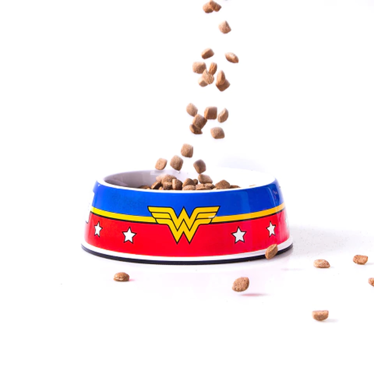 Nosso Bowl de Melamina Mulher Maravilha é a opção perfeita para alimentar seu pet com estilo e praticidade.