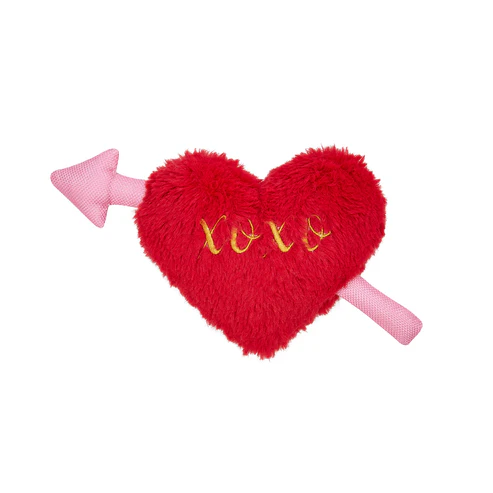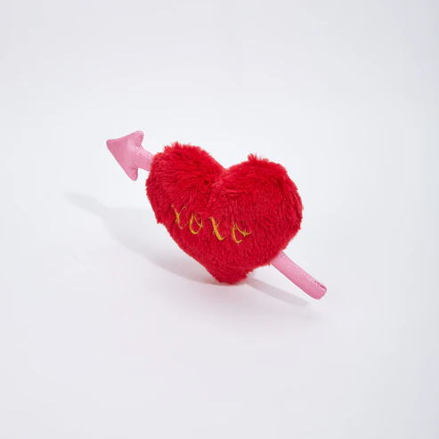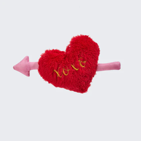 Este adorável coração é confeccionado em um material macio e felpudo, irresistível ao toque, na cor vermelha clássica do amor. Ele é atravessado por uma delicada flecha cor-de-rosa, feita de um material texturizado e suave para uma experiência sensorial única. O detalhe mais especial fica por conta do bordado em linha dourada, que forma um elegante “xoxo” em cursive, garantindo um visual sofisticado e cheio de amor.