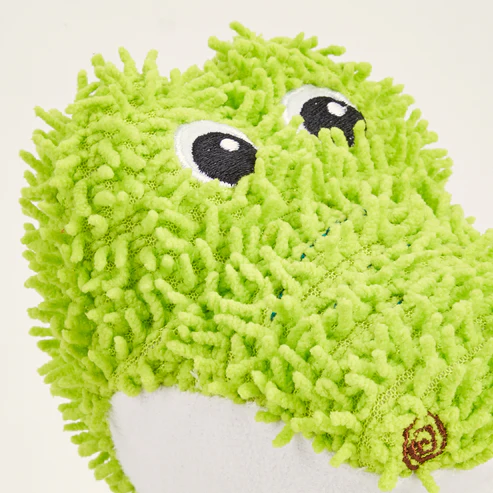 Apesar de super resistente, a experiência sensorial é incrível! Seu exterior é revestido com um macio tecido chenille, com aquela textura de “loop” que os cães adoram morder e amassar. As mãozinhas e pezinhos são em peluche liso e suave, criando um contraste agradável ao toque.