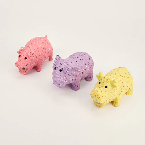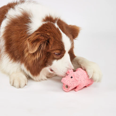E a diversão tem som! Com um simples aperto, o porco emite um autêntico grunhido que vai aguçar a curiosidade do seu pet e estimular a atividade física.