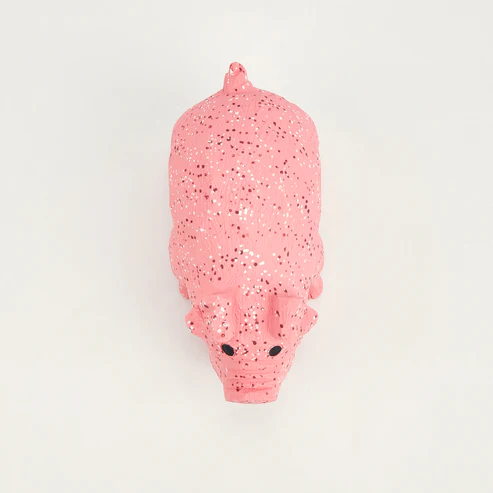 Com um design que imita perfeitamente a textura e os detalhes finos de uma escultura em madeira artesanal, este brinquedo adorável é, na verdade, fabricado em latex resistente e de alta qualidade. Seu corpo rosa é enfeitado com divertidas pintas brancas e vinho, criando um visual alegre e único.