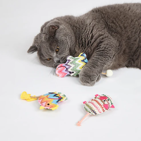 Este é um brinquedo trançado em sisal, recheado com catnip de alta qualidade proveniente da América do Norte.
