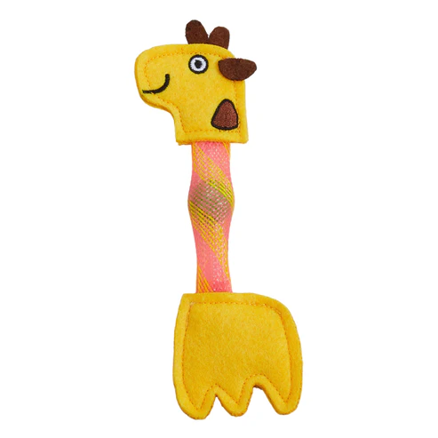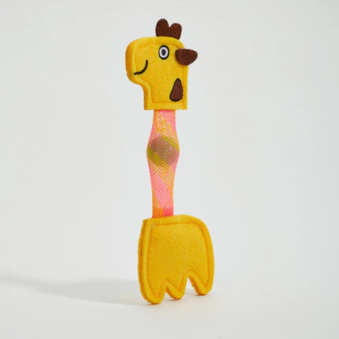 Confeccionado com materiais de alta qualidade e um cuidado especial com os detalhes, a nossa girafa possui a cabeça e a base feitas de feltro extremamente grosso e resistente, garantindo máxima durabilidade mesmo nas brincadeiras mais intensas. A costura é impecável e os detalhes são encantadores, incluindo ossicones (chifres) de feltro, orelha, manchas características e uma fofa expressão feliz com um pontinho bordado na bochecha, tornando este brinquedo absolutamente adorável.