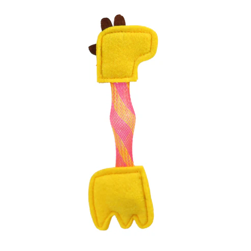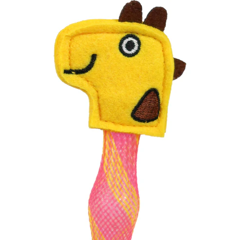 Dois cordões pendurados na parte inferior imitam pezinhos, adicionando um elemento extra para seu gato perseguir e capturar. O corpo é confeccionado em malha trançada resistente, que abriga de forma segura uma bolinha com sininho em seu interior. O som suave e gentil estimula os sentidos do seu gato sem ser muito estridente.