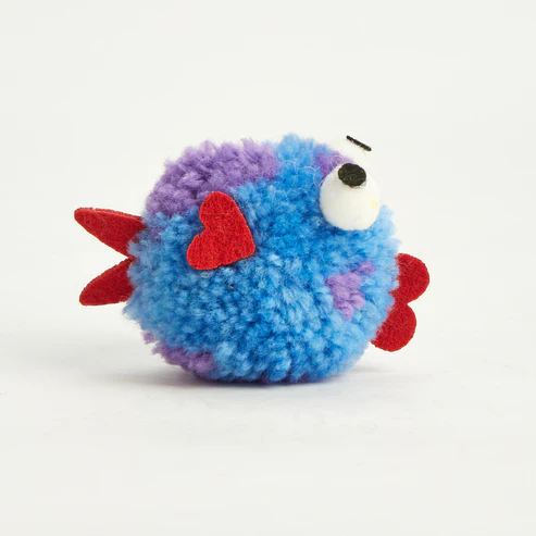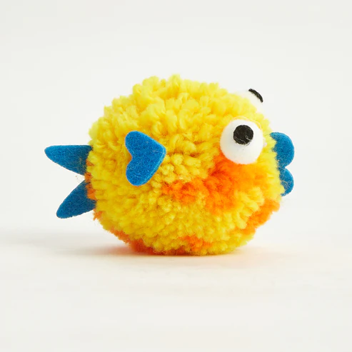 É uma latinha de sardinha super fofa, reunindo pompom, pelúcia, catnip e função de esconder petiscos em um único produto.