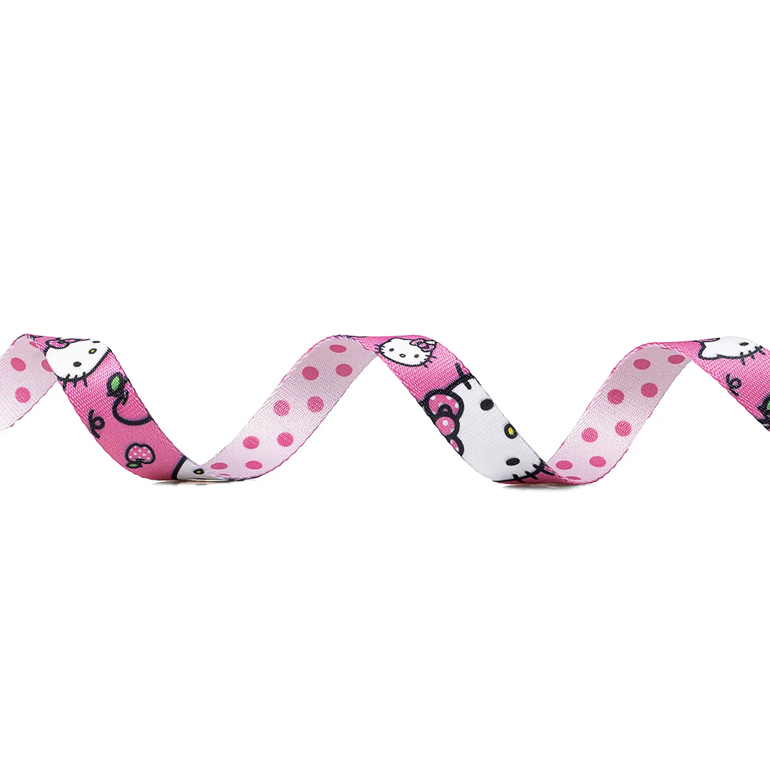 Do lado principal temos as faces da personagem com seus elementos característicos como maçãs e corações, e no verso temos uma estampa de bolinhas que formam um lindo padrão de poá que conversa totalmente com a coleção FreeFaro Hello Kitty ®.