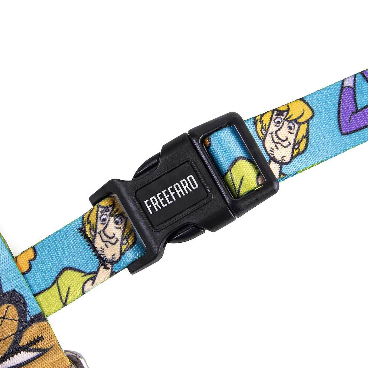 Inspirada em um dos desenhos mais famosos da história, a coleção FreeFaro Scooby-Doo™é uma parceria FreeFaro & Warner Bros que traz referência direta e carinhosa aos fãs da franquia. Possui uma estampa dupla face, de um lado, temos o destaque para as faces divertidas do cachorro medroso e investigador, elementos da Van Máquina do Mistério, a Mystery Machineda animação, logo original e seus amigos — Salsicha, Velma, Fred e Daphne. Do outro a fita é composta por listras verde e azul, além de logos randômicos espalhados por toda a estampa.