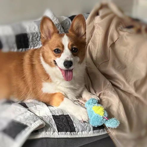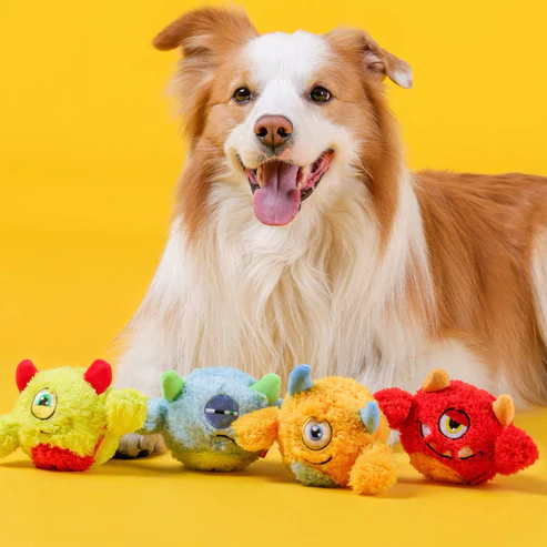 Possui aparência peluda e pelos longos e macios confeccionados com tecidos ecologicamente corretos, conferindo aos cães um toque confortável.