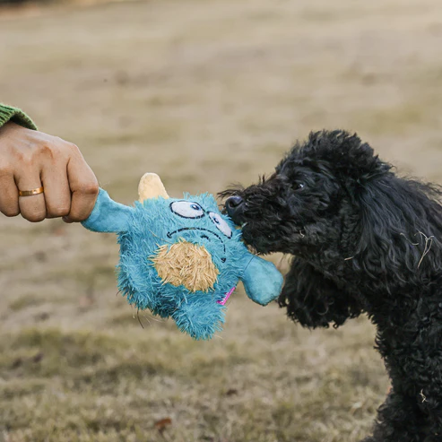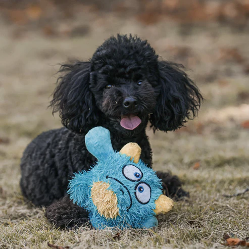 Possui aparência peluda e pelos longos e macios confeccionados com tecidos ecologicamente corretos, conferindo aos cães um toque confortável.