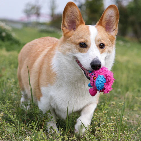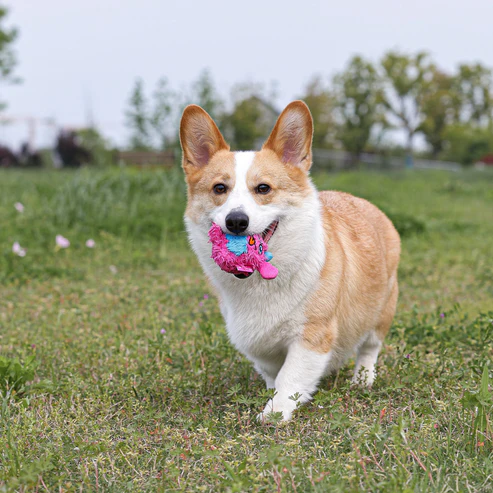 Dentro há uma bola TPR com pontas, que pode emitir sons nítidos. Os picos suaves massageiam a boca do seu cão para um segundo nível de diversão.