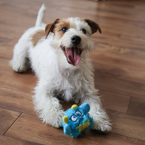 Possui aparência peluda e pelos longos e macios confeccionados com tecidos ecologicamente corretos, conferindo aos cães um toque confortável.