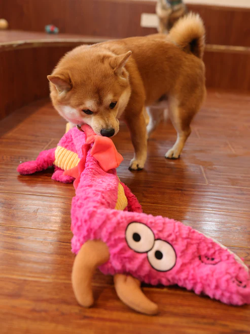 Possui aparência peluda e pelos longos e macios confeccionados com tecidos ecologicamente corretos, conferindo aos cães um toque confortável.