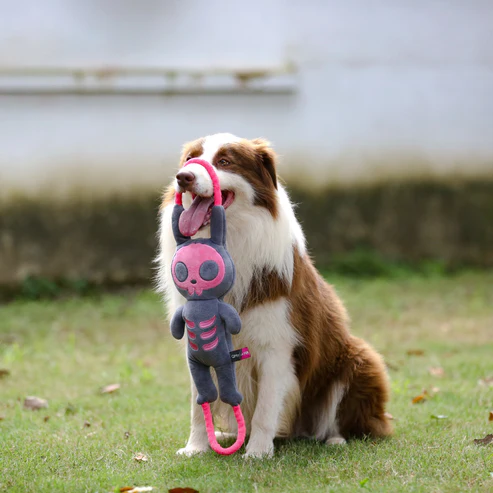 O Skeleton Rabbit (Coelho Esqueleto) atualizou criativamente o brinquedo para anéis de puxar duplos, mais fáceis de interação!
