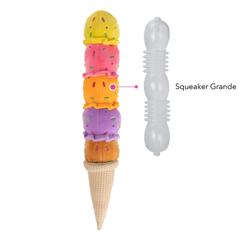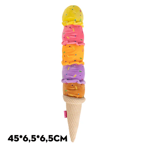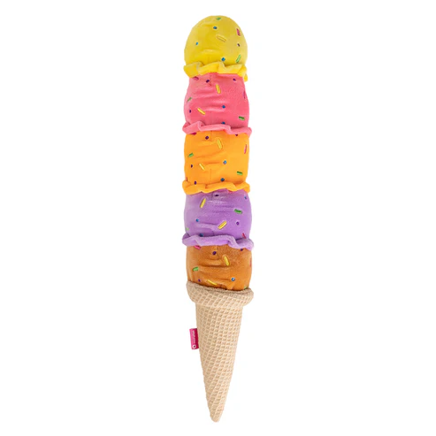 Este sorvete colorido com casquinha faz som ao ser sacudido e é perfeito para brincar sozinho ou puxar.