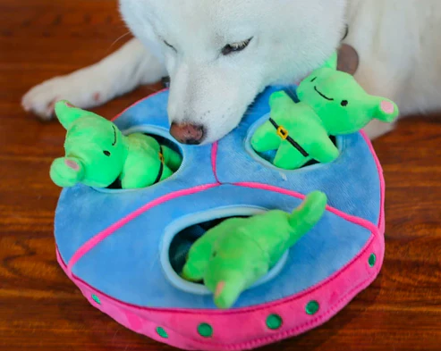 - Interatividade Máxima: Um grande brinquedo que esconde três mini brinquedos dentro, perfeito para manter seu cão entretido.
